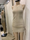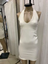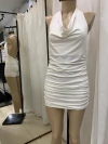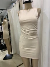 Diseñado para realzar la silueta, este vestido al cuerpo en microfibra suave se ajusta perfectamente y brinda comodidad. Los frunces laterales estilizan y aportan un detalle favorecedor, mientras que el cuello bûche suma un toque elegante y delicado. En color blanco, es una opción fresca y sofisticada para salidas, cenas o eventos especiales.